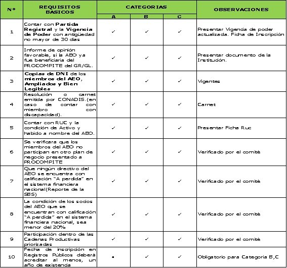 Requisitos para el registro de los Agentes Económicos Organizados (AEOs) participantes, del proceso Concursable Procompite 2025 MPMN:
